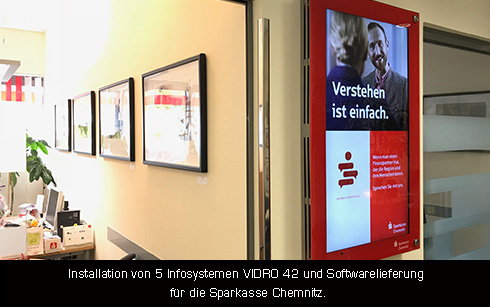 pax media installiert für die Sparkasse Zwickau die 13. Filiale und das 70. Info-System.