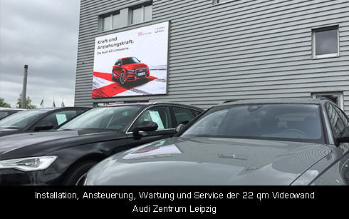 Für das Audi Zentrum Leipzig wird eine 22 qm Videowand mit 8 mm Pixelabstand durch pax media in die Fassade integriert.